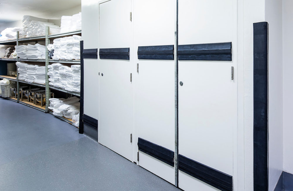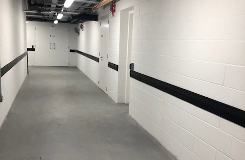 150mm high, slimline EPDM rubber crash rails used for protecting walls from damage caused by trolleys, carts and vehicles.
